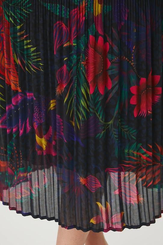 Юбка из коллекции Medicine. Модель прямого кроя, выполнена из плиссированной ткани. - Простой дизайн. - Повышенное состояние. - Эластичный пояс. - Плиссированный материал. - Модель изготовлена из прозрачного материала. - Дополнительный слой материала в виде подкладки. - Узорчатая ткань. - Узор с растительными и животными мотивами. - Модель макси длины. - Ширина талии (до растягивания): 34,5 см. - Ширина талии (после растяжения): 49 см. - Длина: 86 см. - Размеры указаны для размера: S.