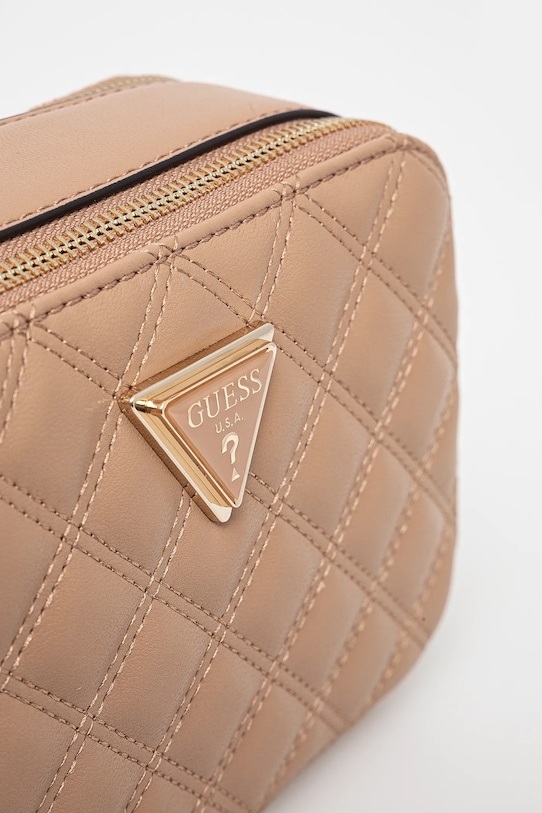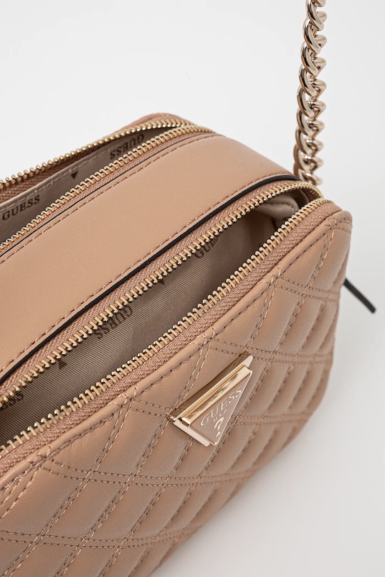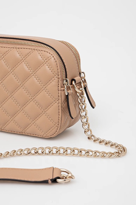 Небольшая сумочка из коллекции Guess. Модель на молнии, выполнена из экокожи. - Двухкамерная модель. - Несъемный, нерегулируемый ремешок. - Внутренний карман на молнии для удобного и безопасного хранения телефона и других мелких предметов. - Количество слотов для карт: 3. - Сумка для ношения через плечо. - Не подходит для формата А4. - В комплект входит чехол для переноски. - Модель на подкладке. - Длина ремешка: 128 см. - Глубина: 7 см. - Высота: 13,5 см. - Ширина у основания: 20 см.
