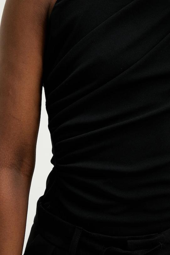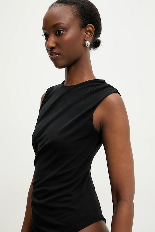 Этот боди из коллекции Answear.LAB выполнен из тонкого, высокоэластичного трикотажа. Содержание полиэстера делает материал менее мнущимся. - Приталенный крой, подчеркивающий силуэт. - Классический круглый вырез. - Нерегулируемые лямки не соскальзывают с плеч, обеспечивая комфорт во время занятий. - Модель с открытой спиной. - Застежка-кнопка в области паха для полной функциональности. - Модель с декоративными оборками. - Длина: 74 см. - Ширина под мышками: 40 см. - Размеры указаны для размера: S.