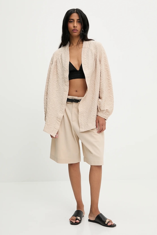 Эти шорты Answear.LAB изготовлены из тонкой, неэластичной ткани. Полиэстер обеспечивает лучшую устойчивость к сминанию. - Модель с высокой талией, застежкой на молнию, пуговицы и крючок. - Два накладных кармана спереди. - Свободный крой, обеспечивающий полную свободу движений. - Имитация карманов на ягодицах. - Ширина талии: 35 см. - Ширина бедер: 53 см. - Высота талии: 30 см. - Ширина штанины внизу: 35 см. - Ширина штанины: 37 см. - Длина штанины: 55 см. - Размеры указаны для размера: S.