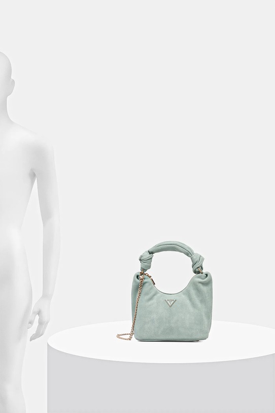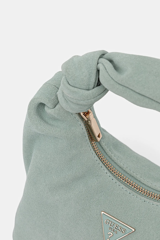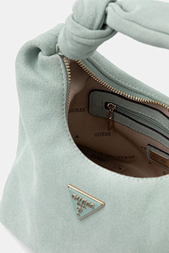 Небольшая сумочка из коллекции Guess. Застегивается на молнию, выполнена из замши. - Отделение на молнии. - Имеет внутренний карман на молнии и отделения для карт. - Не подходит для формата А4. - Имеет ручку и съемный нерегулируемый ремень. - Модель оснащена металлическими ножками, защищающими дно сумки. - Входящий в комплект тканевый чехол защищает изделие от пыли. - Длина прикрепляемого ремня: 100 см. - Длина ручки: 22 см. - Глубина: 12 см. - Высота: 14 см. - Ширина у основания: 20 см.