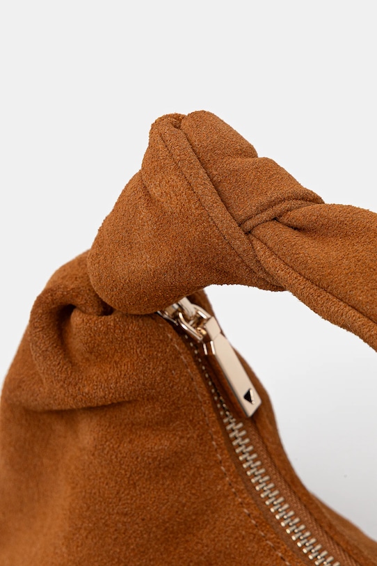 Небольшая сумочка из коллекции Guess. Застегивается на молнию, выполнена из замши. - Отделение на молнии. - Имеет внутренний карман на молнии и отделения для карт. - Не подходит для формата А4. - Имеет ручку и съемный нерегулируемый ремень. - Модель оснащена металлическими ножками, защищающими дно сумки. - Входящий в комплект тканевый чехол защищает изделие от пыли. - Длина прикрепляемого ремня: 100 см. - Длина ручки: 22 см. - Глубина: 12 см. - Высота: 14 см. - Ширина у основания: 20 см.