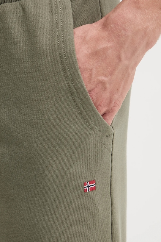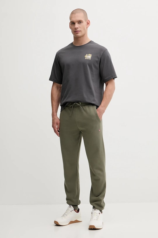 Эти спортивные брюки из коллекции Napapijri изготовлены из эластичного трикотажа. Они изготовлены из исключительно комфортного материала с высоким содержанием хлопка. - Обычная посадка. - Эластичный пояс со шнурками. - Два накладных кармана спереди. - Ножки отделаны удобными эластичными манжетами. - Ширина талии: 41 см. - Ширина бедер: 53 см. - Высота талии: 32 см. - Ширина штанины внизу: 12 см. - Ширина штанины: 29 см. - Длина по внутреннему шву: 83 см. - Размеры указаны для размера: M.