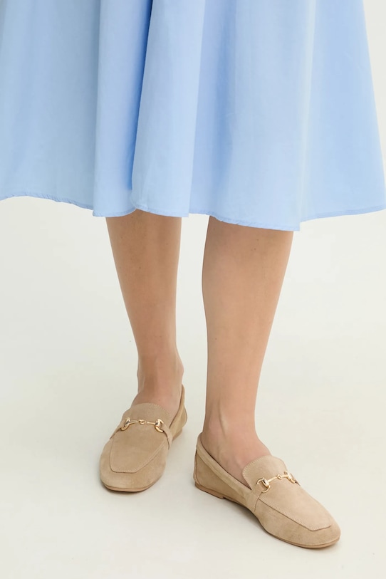 Эти мокасины из коллекции Answear.LAB изготовлены из замши. Эти лёгкие и удобные туфли идеально подойдут для повседневной носки. - Миндалевидный, мягкий нос. - Жесткий задник стабилизирует пятку и удерживает ногу в обуви, не давая ей выскальзывать во время движения. - Модель с кожаной внутренней частью, комфортной для стопы, предотвращающей натирание, потертости и появление неприятного запаха. - Резиновая подошва прочная и устойчивая к повреждениям. - Длина вставки: 25 см. - Размеры указаны для размера: 39.