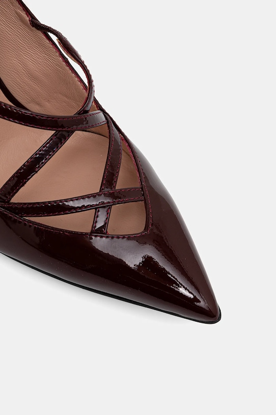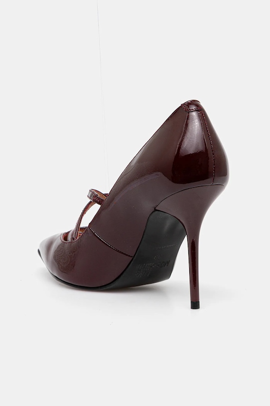 Эти лакированные туфли на шпильке из коллекции Love Moschino — эффектный дизайн для особых случаев. - Заостренный, жесткий нос. - Усиленный задник обеспечивает отличную поддержку лодыжки и пятки. - Застежка-пряжка со штифтом для индивидуальной подгонки. - Резиновая подошва прочная и устойчивая к повреждениям. - Модель на шпильке. - Кожаный салон. - Входящий в комплект тканевый чехол защищает изделие от пыли. - Высота каблука: 10 см. - Длина вставки: 25 см. - Размеры указаны для размера: 39.