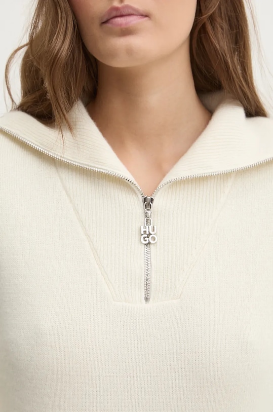Этот свитер HUGO изготовлен из гладкой трикотажной ткани и содержит переработанные волокна. - Изделие содержит переработанные волокнистые материалы. - Простой дизайн, не стесняющий движений. - Крой рукава со спущенной линией плеча не ограничивает подвижность. - Застежка на короткую молнию. - Рукава и нижний край отделаны удобными эластичными манжетами. - Трикотаж средней толщины. - Длина рукава (от воротника): 67 см. - Длина: 42 см. - Ширина под мышками: 42 см. - Размеры указаны для размера: S.
