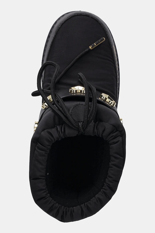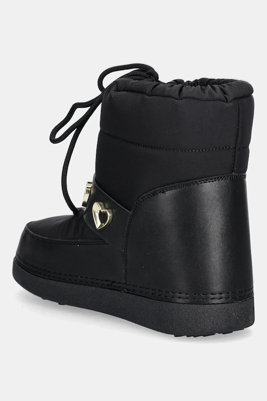 Зимние ботинки из коллекции Love Moschino. Изготовлены из комбинации экокожи и текстиля. - Круглый, слегка утолщенный носок. - Усиленный задник с мягким наполнителем защищает пятку от истирания. - Текстильная внутренняя часть комфортна для ног и облегчает содержание обуви в чистоте. - Регулировка обхвата верхней части изделия с помощью кулисок со стопорами. - Резиновая подошва прочная и устойчивая к повреждениям. - Длина вставки: 24 см. - Размеры указаны для размера: 37/38. - Изолированная модель.