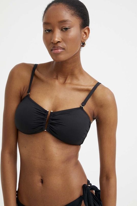 Плавательный бюстгальтер из коллекции Answear.LAB. Изготовлен из гладкого материала. - Съемные подушечки слегка придают жесткость, стабилизируют бюст и обеспечивают дополнительную защиту. - Регулируемые бретели обеспечивают оптимальную поддержку груди и позволяют индивидуально подогнать по фигуре, не раздражая кожу на плечах. - Модель с регулируемой шнуровкой. - Дополнительный слой материала в виде подкладки увеличивает покрытие и обеспечивает дополнительный комфорт во время активности. - Декоративные оборки.