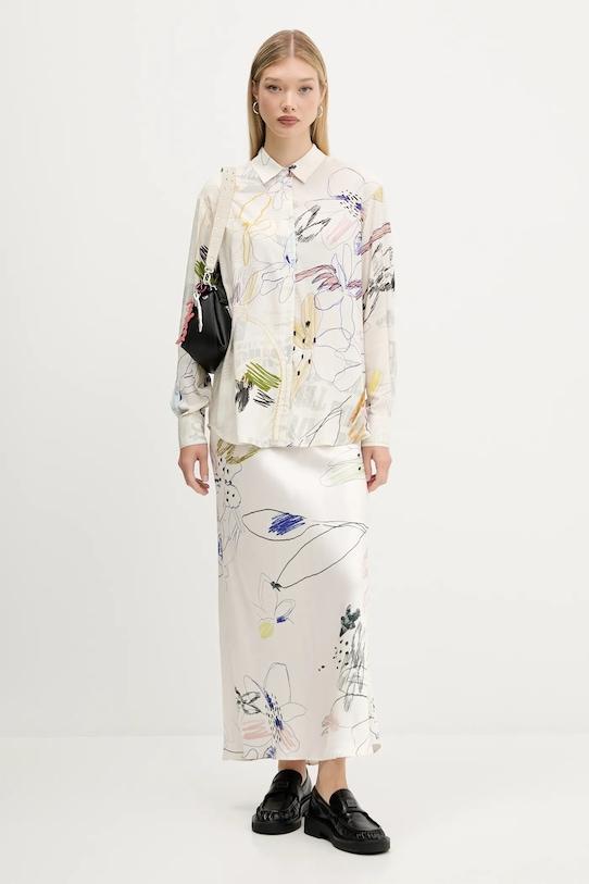 Эта рубашка Desigual выполнена из тонкой, неэластичной ткани. Модель выполнена из дышащего вискозного материала. - Рубашка свободного кроя отличается свободным кроем, обеспечивает комфорт и не стесняет движений. - Крой рукава со спущенной линией плеча не ограничивает подвижность. - Застежка на пуговицы. - Модель с мягким воротником. - Манжеты на пуговицах. - Узорчатая ткань. - Длина рукава (от воротника): 75 см. - Длина: 70 см. - Ширина под мышками: 59 см. - Размеры указаны для размера: S.