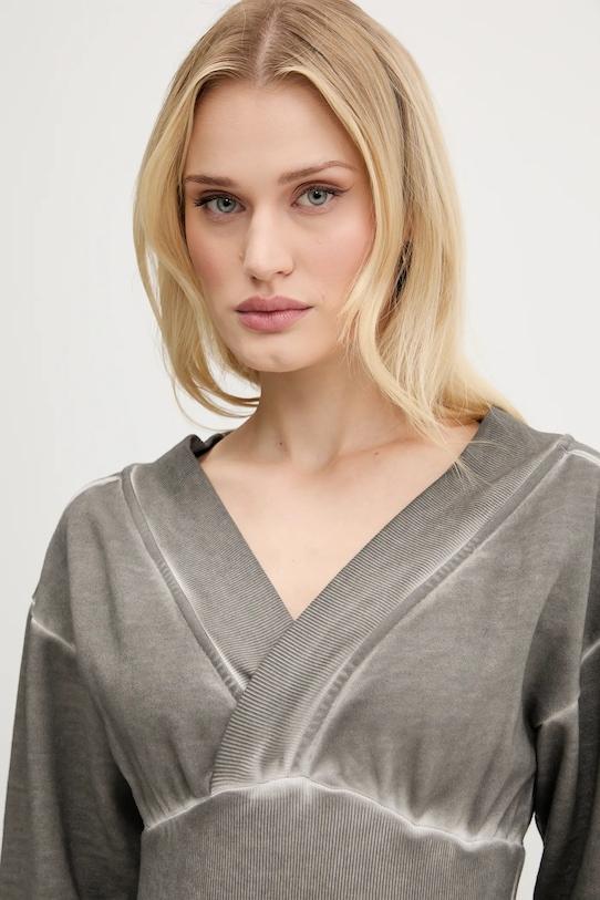 Это платье из коллекции Karl Lagerfeld Jeans выполнено из трикотажного полотна с эффектом потертости. Оно эластичное, облегающее. - Свободный верх и облегающий низ. - Острый ребристый вырез. - Крой рукава со спущенной линией плеча не ограничивает подвижность. - Длинные рукава с удобными эластичными манжетами. - Модель без подкладки. - Эластичная вставка обеспечивает индивидуальную посадку. - Модель без застежки. - Длина: 90 см. - Ширина под мышками: 42 см. - Размеры указаны для размера: S.