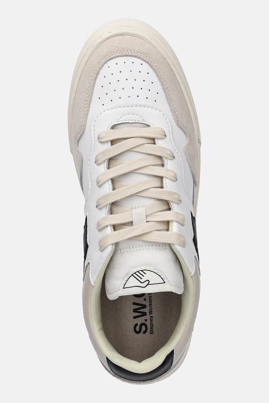 Эти кроссовки из коллекции Stepney Workers Club изготовлены из комбинации натуральной кожи, замши и текстиля. Они оснащены текстильной стелькой, которая удобна и легко чистится. - Зажатый нос. - Усиленный задник обеспечивает отличную поддержку лодыжки и пятки. - Классическая шнуровка позволяет индивидуально подогнать обувь по ноге. - Резиновая подошва прочная и устойчивая к повреждениям. - Текстильная внутренняя часть комфортна для ног и облегчает содержание обуви в чистоте. - Съемная, легко моющаяся вставка.
