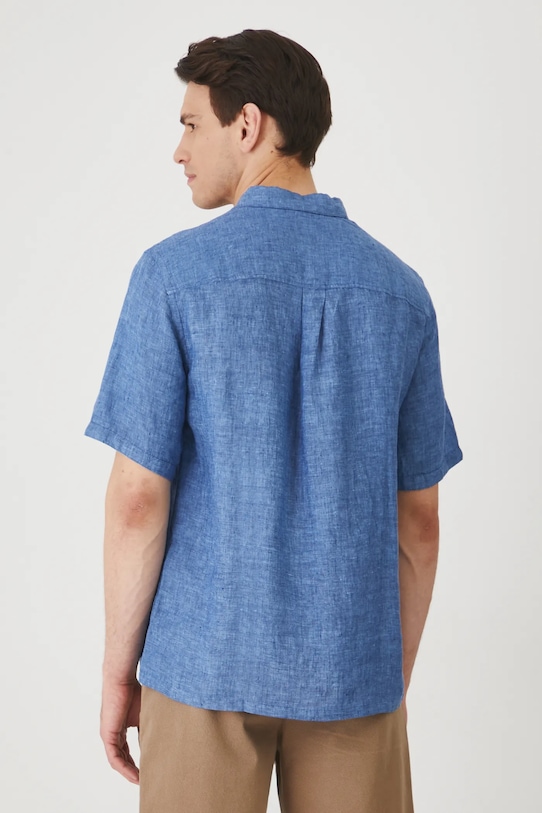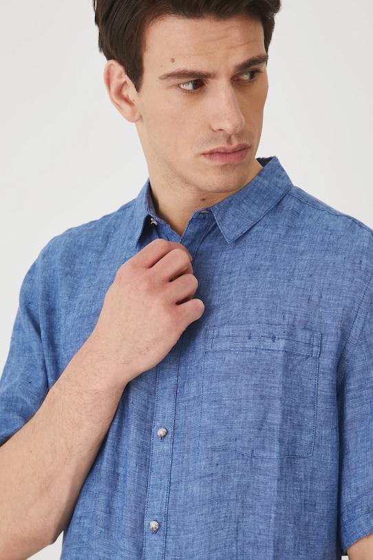 Эта рубашка из коллекции Medicine. Она сшита из льна и имеет классический воротник. - Натуральный, воздушный и прочный материал, изготовлен из 100% льна. - Рубашка прямого кроя мягко облегает фигуру, но не подчеркивает ее, обеспечивая свободу движений. - Короткий рукав. - Модель с воротником. - Застежка на пуговицы. - Нагрудный карман. - Меланжевая ткань. - Окружность воротника: 45,5 см. - Длина: 78 см. - Ширина груди: 61,8 см. - Ширина плеч: 50,4 см. - Размеры указаны для размера: L.