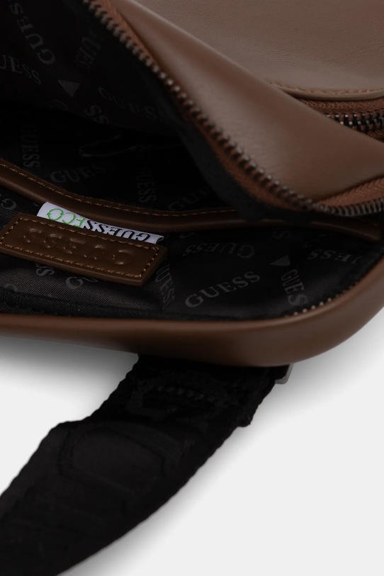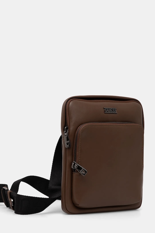 Сумка из коллекции Guess. Изготовлена из экокожи. - Функциональный передний карман обеспечивает быстрый доступ к необходимым вещам. - Не подходит для формата А4. - Карман на магнитной застежке на задней стороне позволяет безопасно хранить телефон или другие мелкие предметы. - Модель на подкладке. - Два внутренних накладных кармана. - Несъемный длинный ремешок с регулировкой. - Высота: 23 см. - Ширина у основания: 20 см. - Минимальная длина ремня: 95 см. - Максимальная длина ремня: 145 см.