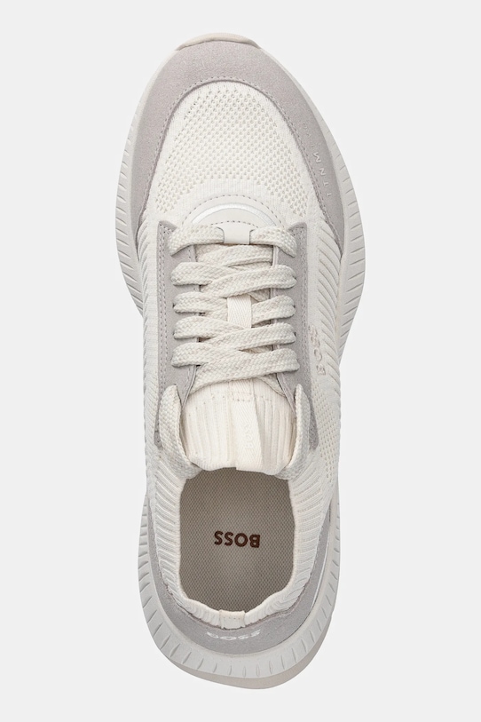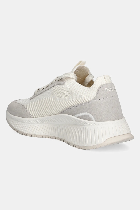 Эти кроссовки из коллекции BOSS изготовлены из комбинации текстиля и замши. Их гибкий верх легко адаптируется к форме стопы. - Круглый, слегка утолщенный носок. - Жесткий задник стабилизирует пятку и удерживает ногу в обуви, не давая ей выскальзывать во время движения. - Плоские шнурки устраняют давление на подъем стопы, обеспечивая хорошую посадку и комфорт. - Высота платформы: 4 см. - Резиновая подошва прочная и устойчивая к повреждениям. - Длина вставки: 24,5 см. - Размеры указаны для размера: 39.