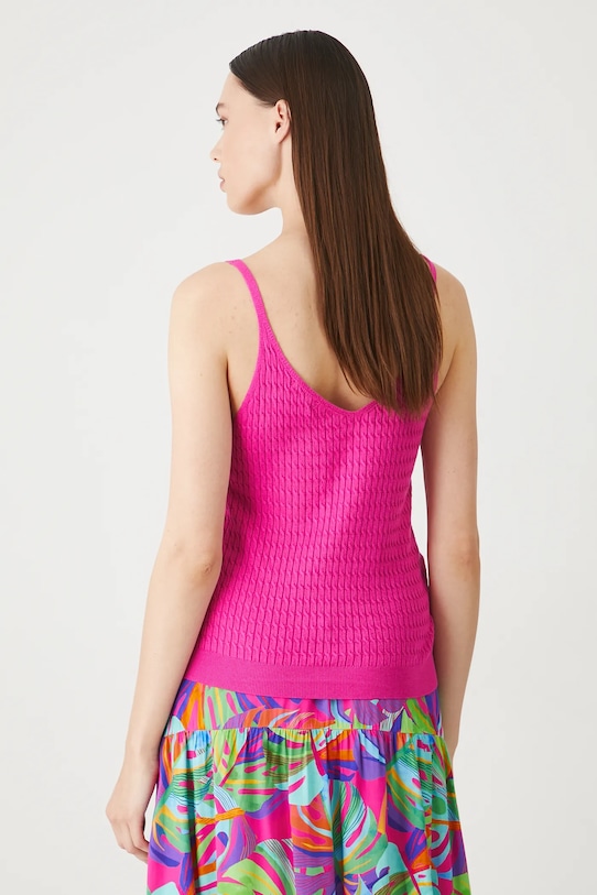 Топ из коллекции Medicine. Изготовлен из фактурного трикотажа. - Материал с сертификатом OEKO-TEX Standard 100 гарантирует, что текстильные изделия, на которых он нанесен, не содержат вредных и потенциально опасных для человека и окружающей среды веществ. - Приталенный крой. - Модель без бретелек. - Нерегулируемые, несъемные лямки. - Острый вырез. - Нижний край отделан удобной эластичной манжетой. - Материал с текстурой. - Длина: 54 см. - Ширина груди: 37 см. - Размеры указаны для размера: S.
