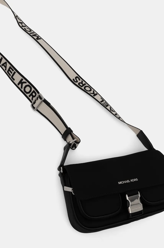 Небольшая сумочка из коллекции MICHAEL Michael Kors. Модель на молнии, выполнена из текстиля. - Клапан застегивается на пряжку. - Внутренний карман на молнии - Два кармана на молнии спереди для удобного хранения мелких предметов. - Модель на подкладке. - Не подходит для формата А4. - Несъемный, регулируемый ремешок. - Сумка для ношения через плечо. - Минимальная длина ремешка: 81 см. - Максимальная длина ремня: 136 см. - Глубина: 5,5 см. - Высота: 14,5 см. - Ширина у основания: 24 см.