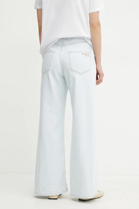 Джинсы из коллекции Twinset, свободного кроя и высокой талии, выполнены из жесткого денима. - Модель с высокой талией, застежкой на пуговицы и молнию. - Три накладных кармана спереди. - Два накладных кармана на ягодицах. - Джинсы, свободные в области бедер и ягодиц.