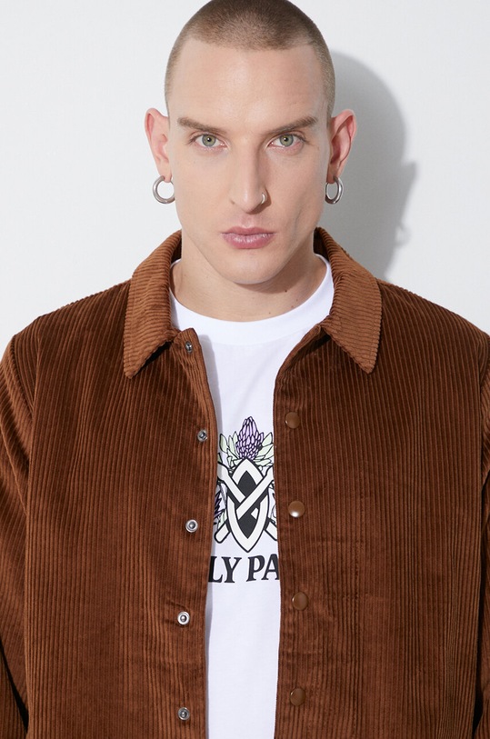 Куртка из коллекции Taikan. Модель без подкладки выполнена из вельвета. Модель выполнена из исключительно комфортной хлопковой ткани. - Простой дизайн, не стесняющий движений. - Неутепленная модель с подкладкой. - Модель с воротником. - Застежка-кнопка. - Рукава отделаны удобными эластичными манжетами. - Два боковых накладных кармана. - Материал с текстурой. - Длина рукава: 67 см. - Длина: 74 см. - Ширина под мышками: 58 см. - Ширина плеч: 45 см. - Размеры указаны для размера: L.
