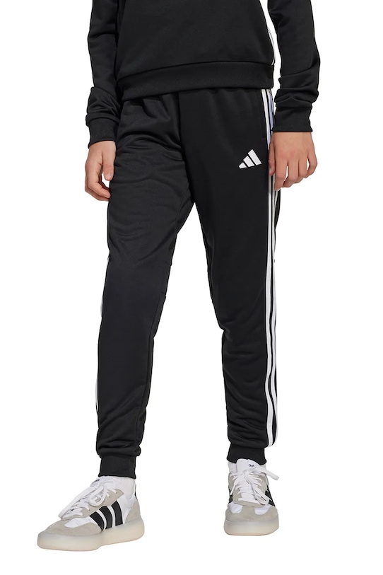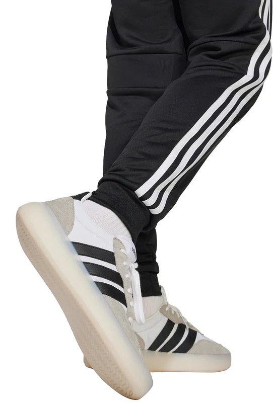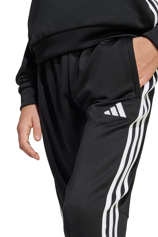 Эти детские спортивные брюки из коллекции adidas Performance изготовлены из трикотажного полотна. В состав входят переработанные волокна. - Это изделие изготовлено из переработанного полиэстера. - Крой с зауженными брючинами, не стесняющими движений. - Эластичный пояс и дополнительная внутренняя регулировка ширины с помощью шнурков для предотвращения сползания во время движения. - Два прорезных боковых кармана на молнии. - Ножки отделаны удобными эластичными манжетами. - Тонкий, слегка эластичный трикотаж.