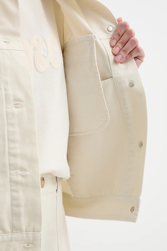 Куртка из коллекции APC. Эта неутеплённая куртка выполнена из гладкой ткани. Эта модель выполнена из исключительно комфортного хлопкового материала. - Свободный крой, обеспечивающий полную свободу движений. - Крой рукава со спущенной линией плеча не ограничивает подвижность. - Удобная застежка на кнопки позволяет легко надевать и снимать. - Манжеты на пуговицах. - Нагрудные карманы. - Два накладных кармана спереди. - Длина: 54 см. - Ширина под мышками: 56 см. - Размеры указаны для размера: 36.