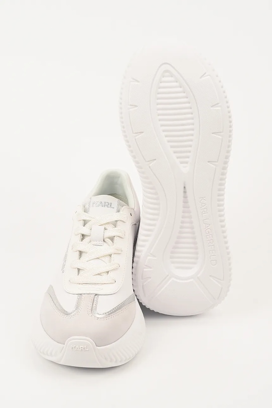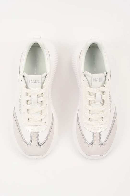 Кроссовки из коллекции Karl Lagerfeld. Изготовлены из комбинации натуральной кожи, замши и текстиля. - Круглый, слегка утолщенный носок. - Плоские шнурки устраняют давление на подъем стопы, обеспечивая хорошую посадку и комфорт. - Мягкая подкладка из текстильного материала предотвращает раздражение и обеспечивает высокий комфорт при ношении. - Жесткий задник стабилизирует пятку и удерживает ногу в обуви, не давая ей выскальзывать во время движения. - Подошва из вспененного ЭВА. - Платформенная модель.