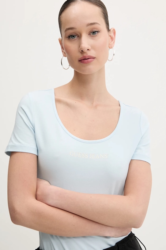 Этот боди из коллекции Guess Jeans выполнен из тонкой эластичной ткани. Модель выполнена из исключительно комфортного материала с высоким содержанием хлопка. - Модель изготовлена из волокон, полученных с использованием экологически безопасных производственных процессов, что позволяет снизить воздействие на окружающую среду. - Этот продукт частично изготовлен из органического хлопка. - Приталенный фасон. - Круглый вырез. - Застежка-кнопка в области паха для полной функциональности. - Модель с принтом.