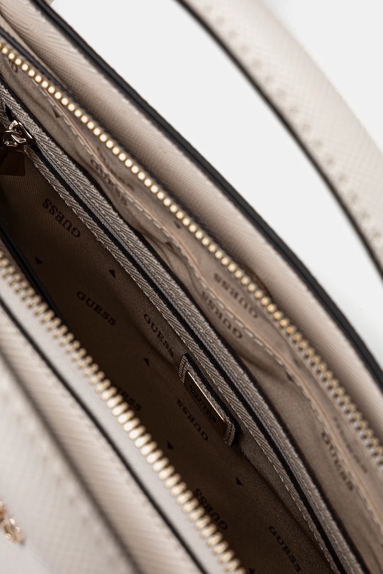 Сумка-тоут среднего размера из коллекции Guess. Модель на молнии выполнена из экокожи. - Имеет два отделения: одно на молнии, другое на кнопке. - Имеет два отделения. - Карман на молнии сзади. - Три внутренних кармана: один на молнии, два накладных. - Имеет ручки и съемный регулируемый ремень. - В комплект модели входит брелок. - Не подходит для формата А4. - Входящий в комплект тканевый чехол защищает изделие от пыли. - Ширина у основания: 28 см. - Высота: 20 см. - Глубина: 9 см.