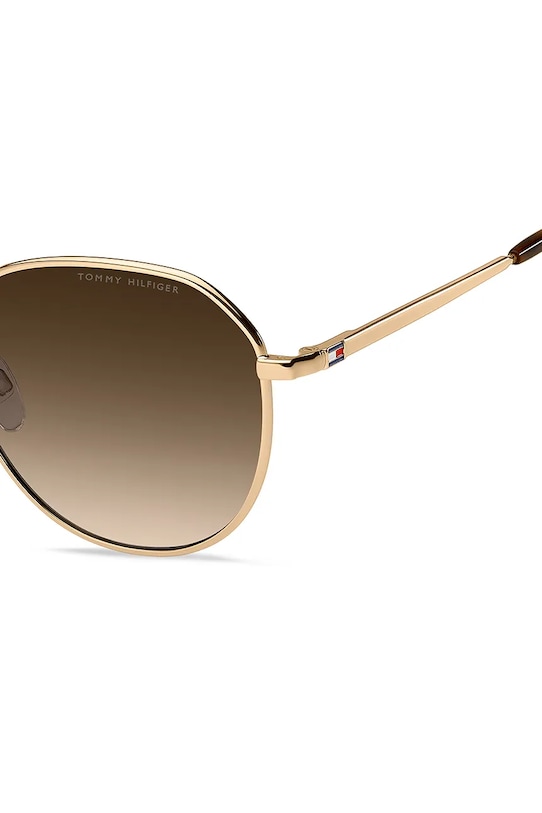 Солнцезащитные очки из коллекции Tommy Hilfiger. Эти очки с градиентными линзами и оправой из пластика и металла. Они также имеют защиту UV 400. - Cat.2 (пропускает 18–43% света) — линзы со средней степенью затемнения. Очки с фильтром Cat.2 подходят для дней с низкой интенсивностью солнечного света. - В комплект модели входят чехол и салфетка для протирки очков. - Форма оправы: круглая. - Фильтр UV 400 обеспечивает максимальную защиту от солнечного излучения. - Ширина рамы: 140 мм. - Ширина линзы: 55 мм.