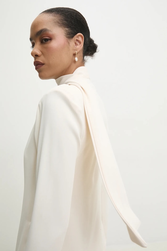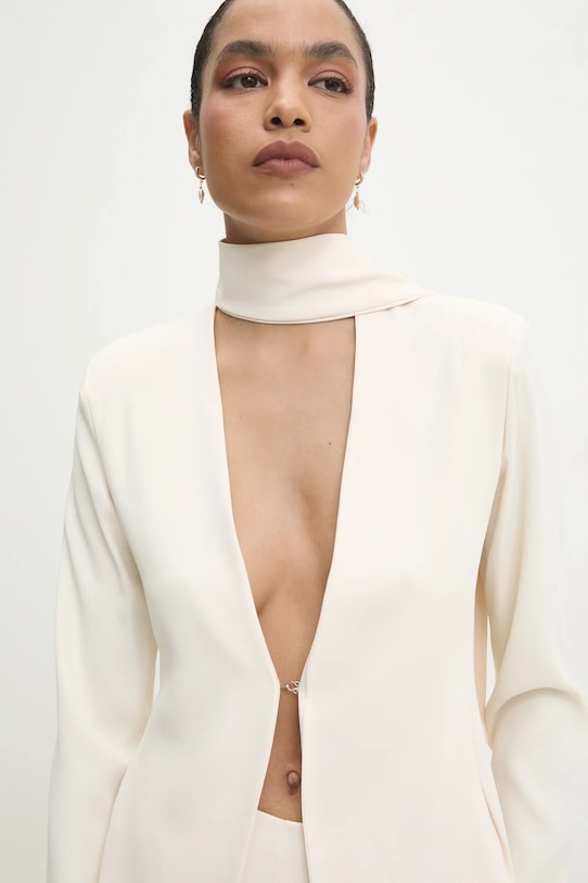 Этот блейзер из коллекции Answear.LAB выполнен из гладкой ткани. Полиэстер обеспечивает высокую устойчивость к сминанию. - Простой дизайн, не стесняющий движений. - Модель без подкладки. - Модель со встроенным шарфом. - Длинный рукав. - В плечах вшиты подкладки. - Застежка на крючок. - Два боковых накладных кармана. - Тонкая, слегка эластичная ткань. - Длина рукава: 60 см. - Длина: 68 см. - Ширина под мышками: 46 см. - Ширина плеч: 38 см. - Размеры указаны для размера: S.