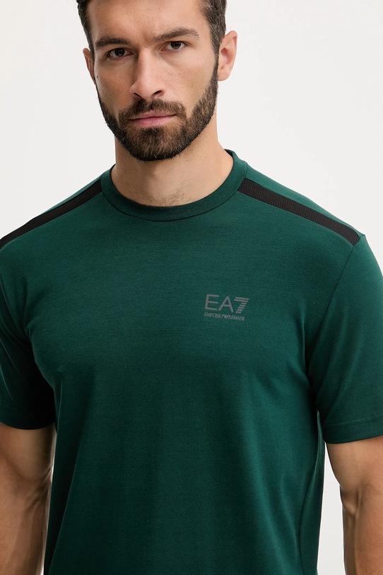 Эта футболка из коллекции EA7 Emporio Armani выполнена из тонкой, эластичной ткани. Эта модель выполнена из исключительно комфортного и дышащего материала, идеально подходящего для теплого времени года. - Технология Ventus7 гарантирует оптимальную регуляцию температуры тела и превосходное отведение влаги. - Простой дизайн, не стесняющий движений. - Короткий рукав. - Классический круглый вырез. - Модель с принтом. - Длина: 71 см. - Ширина под мышками: 55 см. - Размеры указаны для размера: M.