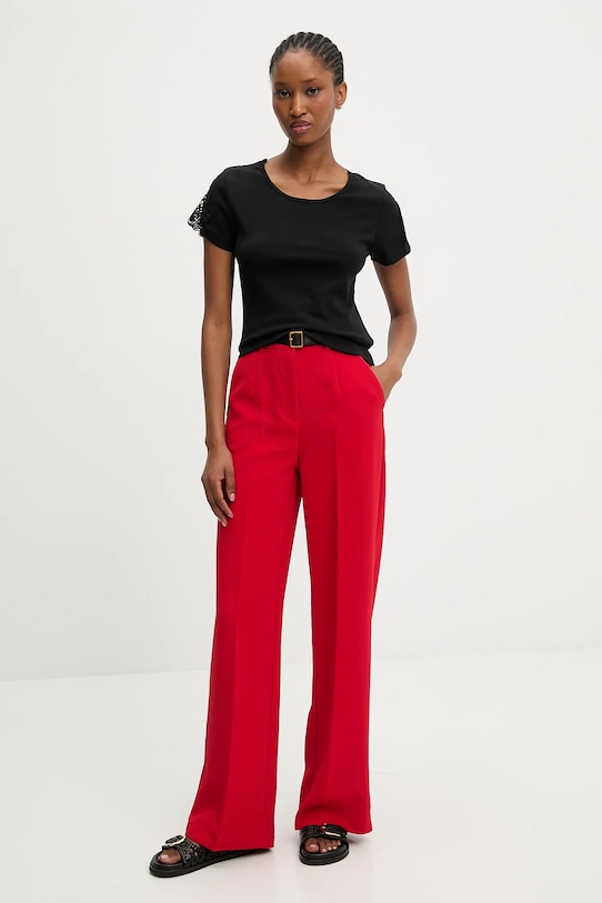 Брюки из коллекции Answear.LAB из гладкой ткани. Полиэстер обеспечивает повышенную устойчивость к сминанию. - Простой дизайн, не стесняющий движений. - Застежка на пуговицы и молнию. - Два накладных кармана спереди. - Ремешок из эко-кожи в комплекте. - Штанина отутюживается в складку. - Ширина талии: 34 см. - Ширина бедер: 48 см. - Высота талии: 30 см. - Ширина штанины внизу: 27 см. - Ширина штанины: 30 см. - Длина по внутреннему шву: 81 см. - Размеры указаны для размера: S.