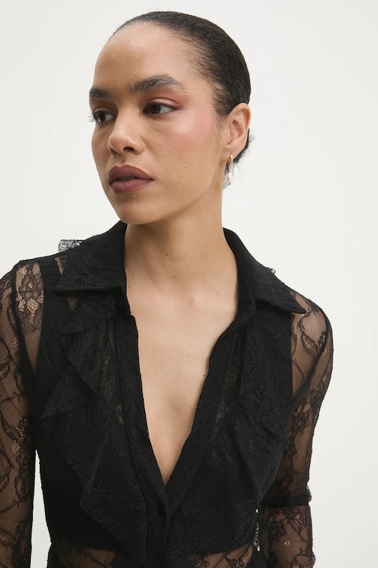 Это кружевное боди из коллекции Answear.LAB выполнено из исключительно удобного и дышащего материала, идеально подходящего для теплого времени года. - Приталенный крой, подчеркивающий силуэт. - Длинный рукав. - Рукава с манжетами на пуговицах. - Модель с воротником. - Удобная застежка на кнопки позволяет легко надевать и снимать. - Застегивается на короткую кнопку. - Модель без подкладки. - Длина рукава: 72 см. - Длина: 75 см. - Ширина под мышками: 43 см. - Указаны размеры: S/M.