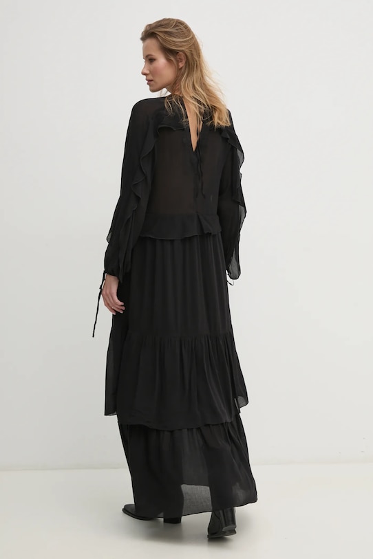 Это платье из коллекции Answear.LAB выполнено из гладкой ткани. Этот лёгкий материал идеально подходит для тёплого времени года. - Расклешенный крой. - Декоративный, заостренный вырез. - Модель с регулируемой шнуровкой. - Рукава реглан благодаря своей конструкции обеспечивают большую свободу движений. - Завязки внизу рукавов. - Модель на подкладке. - Длина рукава (от горловины): 72 см. - Длина: 115 см. - Ширина под мышками: 45 см. - Ширина талии: 42 см. - Указаны размеры: XS/S.