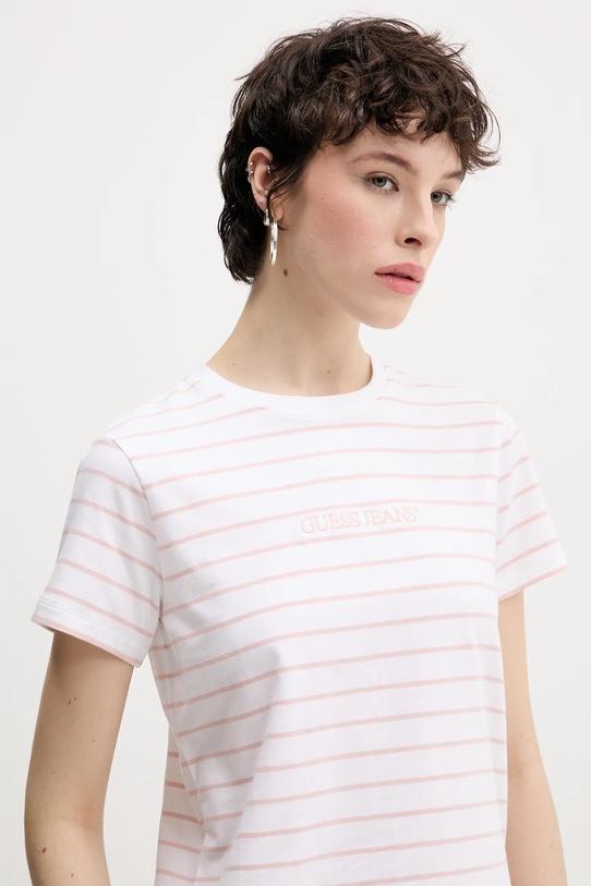Эта футболка из коллекции Guess Jeans выполнена из узорчатого трикотажа. Она изготовлена из исключительно комфортного материала с высоким содержанием хлопка. - Органический хлопок выращивается без использования вредных химикатов, химических пестицидов и искусственных удобрений. - Простой дизайн, не стесняющий движений. - Классический круглый вырез. - Тонкий, эластичный трикотаж. - Логотип бренда вышит спереди. - Длина: 61 см. - Ширина под мышками: 44,5 см. - Размеры указаны для размера: S.