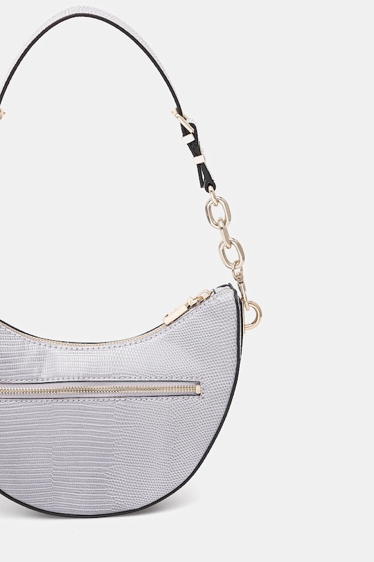 Небольшая сумочка из коллекции Guess. Модель на молнии, выполнена из экокожи. - Застежка-молния. - Модель на подкладке. - Имеет два внутренних кармана: один прорезной, другой на молнии. - Карман на молнии на задней стороне позволяет безопасно хранить телефон или другие мелкие предметы. - Не подходит для формата А4. - Сумка для ношения в руке или на плече. - Входящий в комплект тканевый чехол защищает изделие от пыли. - Глубина: 6 см. - Высота: 15 см. - Ширина у основания: 25,5 см.