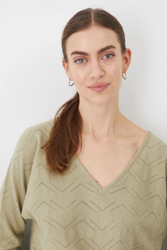 Свитер из коллекции Medicine. С острым вырезом и ажурным трикотажем. - Этот свитер прямого кроя обеспечивает комфорт и универсальный вид. Он мягко облегает фигуру, не перетягивая её. Классический и простой, он прекрасно сочетается как с элегантными, так и с повседневными образами. - Длинные рукава кимоно. - Острый вырез. - Отделка ребер. - Модель выполнена из ажурного материала. - Длина рукава (от горловины): 51 см. - Длина: 60 см. - Ширина груди: 114 см. - Размеры указаны для размера: S.