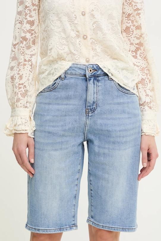 Шорты из коллекции Answear.LAB, выполненные из стираного денима. Модель выполнена из эластичного, облегающего материала. - Шорты слегка приталенные на бедрах. - Модель с высокой талией, застежкой на пуговицы и молнию. - Прямая нога полной длины. - Три накладных кармана спереди. - Два накладных кармана на ягодицах. - Ширина талии: 35 см. - Ширина бедер: 48 см. - Высота талии: 28 см. - Ширина штанины: 29 см. - Длина внешней части штанины: 58 см. - Размеры указаны для размера: S.