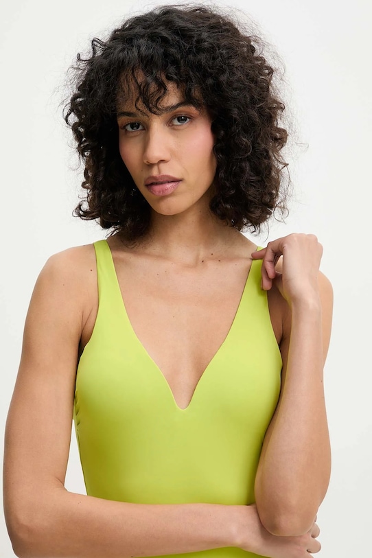 Слитный купальник из коллекции Answear.LAB. Изготовлен из гладкого материала. - Приталенный крой обеспечивает комфорт во время занятий. - Модель на косточках. - Съемные подушечки слегка придают жесткость, стабилизируют бюст и обеспечивают дополнительную защиту. - Регулируемые, несъемные лямки. - Плоские эластичные швы защищают кожу от раздражения и не стесняют движений. - Дополнительный слой материала в виде подкладки увеличивает покрытие и обеспечивает дополнительный комфорт во время активности.