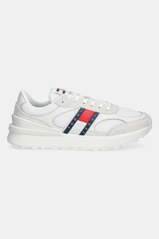 Эти кроссовки из коллекции Tommy Jeans изготовлены из комбинации замши, натуральной кожи и текстиля. Они лёгкие и удобные, идеально подходят для повседневной носки. - Слегка затвердевший нос. - Усиленный задник обеспечивает отличную поддержку лодыжки и пятки. - Классическая шнуровка позволяет индивидуально подогнать обувь по ноге. - Резиновая подошва прочная и устойчивая к повреждениям. - Съемная, легко чистящаяся текстильная вставка. - Длина вставки: 28 см. - Размеры указаны для размера: 43.
