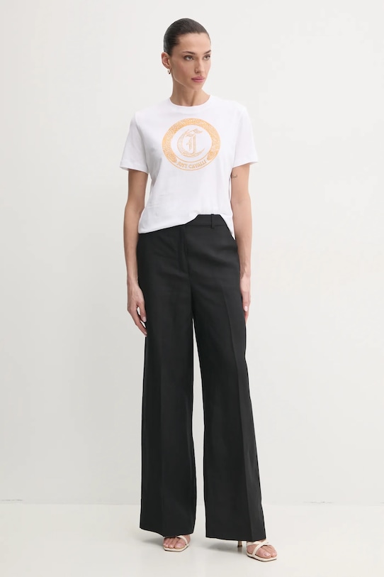 Эта футболка из коллекции Just Cavalli выполнена из тонкой, эластичной ткани. Эта модель выполнена из исключительно комфортного и дышащего материала, идеально подходящего для теплого времени года. - Свободный крой, обеспечивающий полную свободу движений. - Короткий рукав. - Крой рукава со спущенной линией плеча не ограничивает подвижность. - Классический круглый вырез. - Модель с принтом. - Модель со стразами. - Длина: 62 см. - Ширина под мышками: 50 см. - Размеры указаны для размера: S.