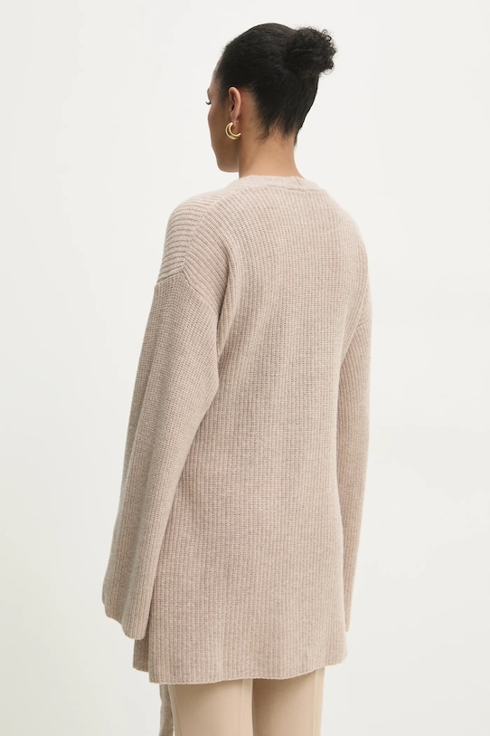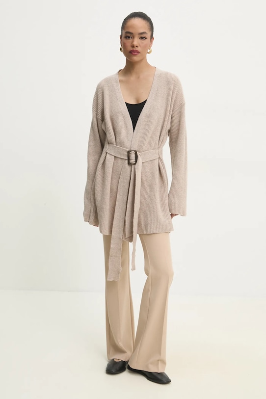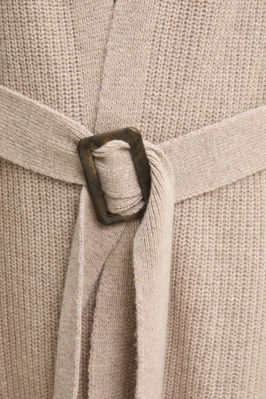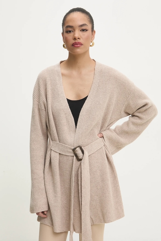 Этот кардиган из коллекции Answear.LAB выполнен из гладкого, эластичного трикотажа. Высокие терморегулирующие свойства шерсти позволяют согреться в холод и охладиться в жару. - Свободный крой, обеспечивающий полную свободу движений. - Длинный рукав. - Крой рукава со спущенной линией плеча не ограничивает подвижность. - Модель с регулируемой шнуровкой. - Трикотаж средней толщины. - Длина рукава (от горловины): 78 см. - Длина: 80 см. - Ширина под мышками: 65 см. - Указаны размеры: S/M.