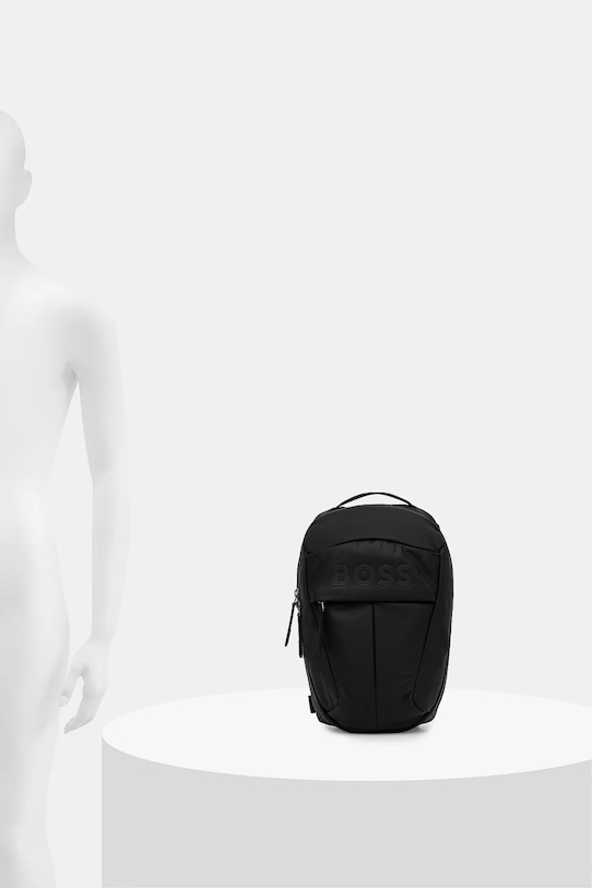 Рюкзак из коллекции BOSS. Изготовлен из комбинации текстиля и синтетических материалов. - Внутренняя часть выполнена из переработанного полиэстера. - Не подходит для формата А4. - Застегивается на двустороннюю молнию. - Карман на молнии спереди. - Внутренний карман на молнии. - Рукоятка. - Несъемный регулируемый ремешок позволяет индивидуально подогнать посадку. - Задняя панель с мягкими сетчатыми элементами. - Глубина: 12 см. - Высота: 30,5 см. - Ширина у основания: 15,5 см.