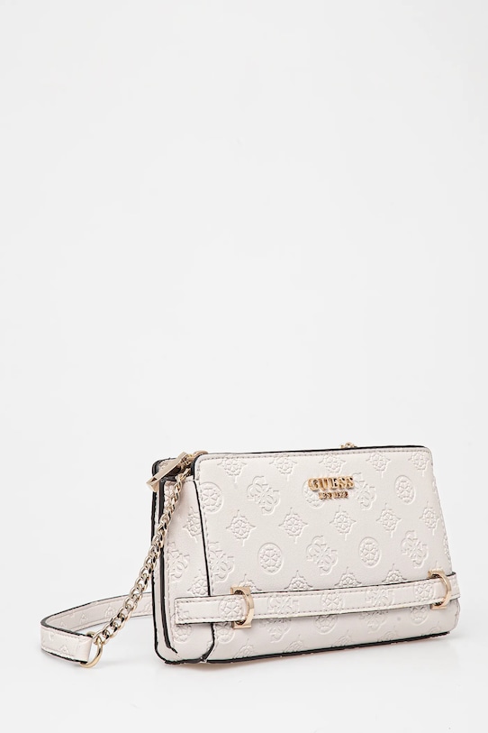 Небольшая сумочка из коллекции Guess. Модель на молнии, выполнена из экокожи. - Имеет три отделения: два открытых и одно на молнии. - Имеет два отделения. - Внутренний карман на молнии. - Имеет внутренние отделения для карт. - Модель на подкладке. - Не подходит для формата А4. - Несъемный, нерегулируемый ремешок. - Входящий в комплект тканевый чехол защищает изделие от пыли. - Количество слотов для карт: 3. - Глубина: 6 см. - Высота: 13 см. - Ширина у основания: 20,5 см.