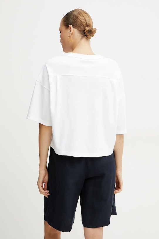 Эта футболка BOSS выполнена из тонкой, эластичной ткани. Эта модель выполнена из исключительно комфортного и дышащего материала, идеально подходящего для теплого времени года. - Изделия линейки BETTER BOSS не менее чем на 60% изготовлены из материалов, полученных более экологичным способом. - Свободный крой, обеспечивающий полную свободу движений. - Короткий рукав. - Крой рукава со спущенной линией плеча не ограничивает подвижность. - Классический круглый вырез. - Модель с декоративной аппликацией.