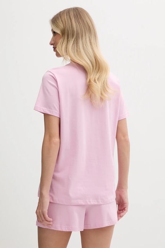 Пижама из коллекции Fila. Модель выполнена из слегка эластичного трикотажа, тонкого материала, идеально подходящего для теплого времени года. - Простой дизайн, не стесняющий движений. - Короткий рукав. - Классический круглый вырез. - Модель с принтом. - Высокая талия. - Эластичный пояс предотвращает скольжение во время движения. - Длина: 63 см. - Ширина под мышками: 53 см. - Ширина талии: 35 см. - Высота талии: 31 см. - Длина штанины: 35 см. - Размеры указаны для размера: S.