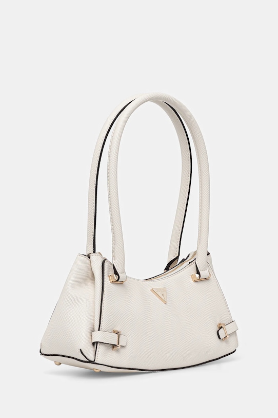 Небольшая сумочка из коллекции Guess. Модель на молнии, выполнена из экокожи. - Имеет три отделения. - Застежка-молния. - Внутренние отделения для карт. - Модель на подкладке. - Модель оснащена металлическими ножками, защищающими дно сумки. - Ручки для удобной переноски в руке или на плече. - Не подходит для формата А4. - Входящий в комплект тканевый чехол защищает изделие от пыли. - Глубина: 10 см. - Высота: 12,5 см. - Ширина у основания: 27,5 см. - Длина ручки: 56 см.