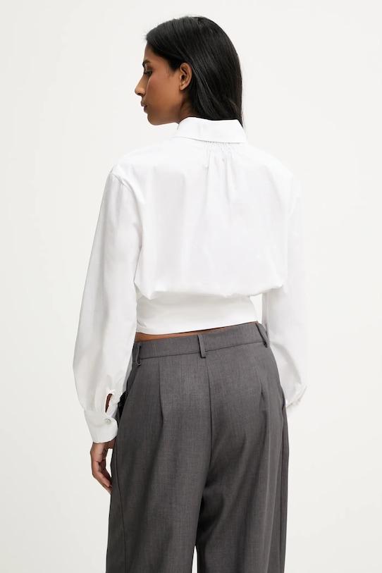 Эта рубашка Answear LAB изготовлена из тонкой, неэластичной ткани с высоким содержанием хлопка. - Рубашка свободного кроя отличается свободным кроем, обеспечивает комфорт и не стесняет движений. - Заниженная линия плеча. - Модель с воротником. - Застежка на пуговицы. - Длинные рукава с манжетами на пуговицах. - Эластичная вставка сзади. - Модель с переплетом. - Длина: 51 см. - Длина рукава (от воротника): 74 см. - Ширина под мышками: 45 см. - Размеры указаны для размера: S.