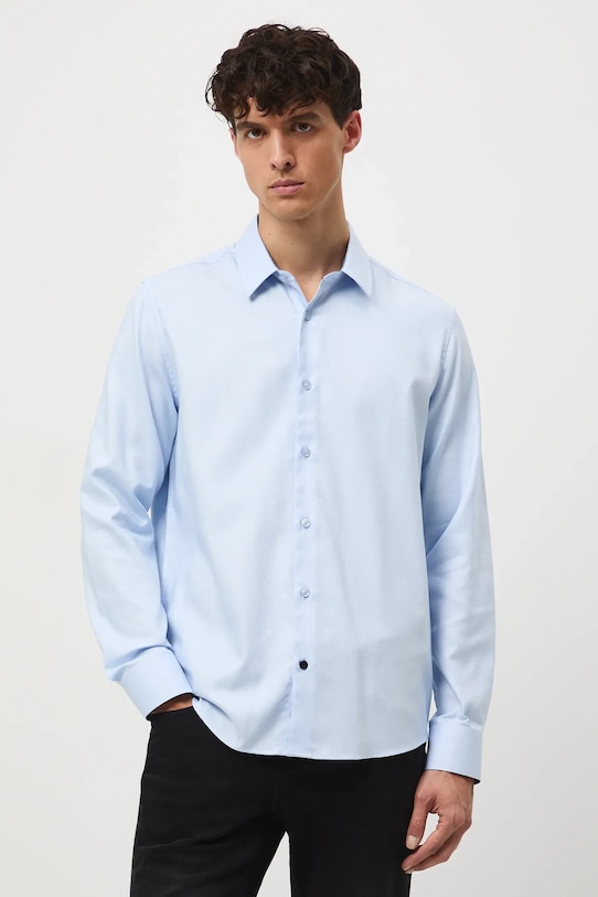 Эта рубашка из коллекции Medicine выполнена из жаккардовой ткани и имеет отложной воротник. - Рубашка прямого кроя мягко облегает фигуру, но не подчеркивает ее, обеспечивая свободу движений. - Длинный рукав. - Манжеты на пуговицах. - Слегка усиленный итальянский воротник-стойка. - Застежка на пуговицы. - Жаккардовая ткань. - Окружность воротника: 43 см. - Длина рукава: 67 см. - Длина: 75,5 см. - Ширина груди: 55,5 см. - Ширина плеч: 46 см. - Размеры указаны для размера: M.