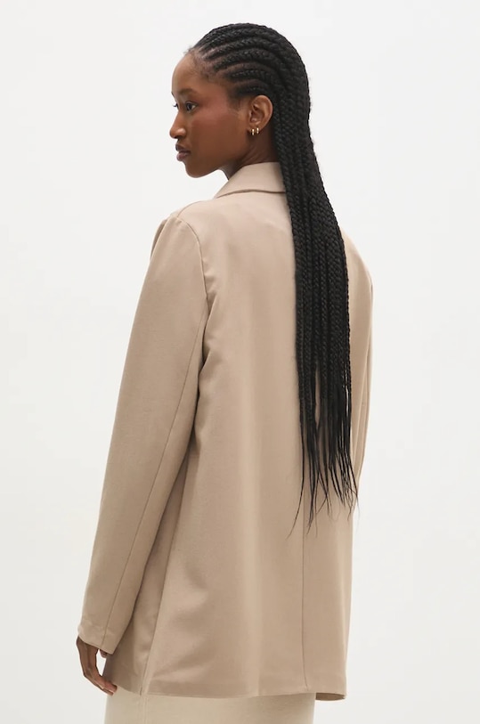 Этот блейзер из коллекции Answear.LAB выполнен из гладкой ткани. Благодаря содержанию полиэстера материал менее мнётся. - Простой дизайн, не стесняющий движений. - Дополнительный слой материала в виде подкладки. - Классические лацканы. - Удобная застежка на кнопки позволяет легко надевать и снимать. - Три накладных кармана спереди. - Тонкая, неэластичная ткань. - Длина рукава: 62 см. - Длина: 78 см. - Ширина под мышками: 55 см. - Ширина плеч: 44 см. - Указаны размеры: S/M.