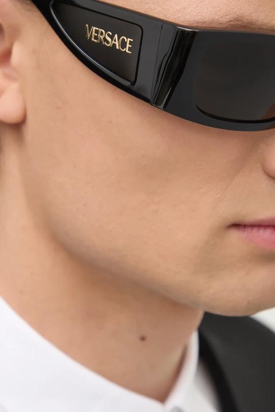 Солнцезащитные очки из коллекции Versace. Модель с гладкими линзами и пластиковой оправой. - Категория 3 (пропускает 8–18% света) — самая распространённая и универсальная категория затемняющих фильтров. Очки категории 3 идеально подходят для повседневного использования в солнечные дни и для отдыха в жарких странах. - УФ-фильтр защищает чувствительную радужную оболочку от UVA- и UVB-излучения. - В комплект модели входят чехол и салфетка для протирки очков. - Ширина рамы: 150 мм. - Ширина линзы: 56 мм.